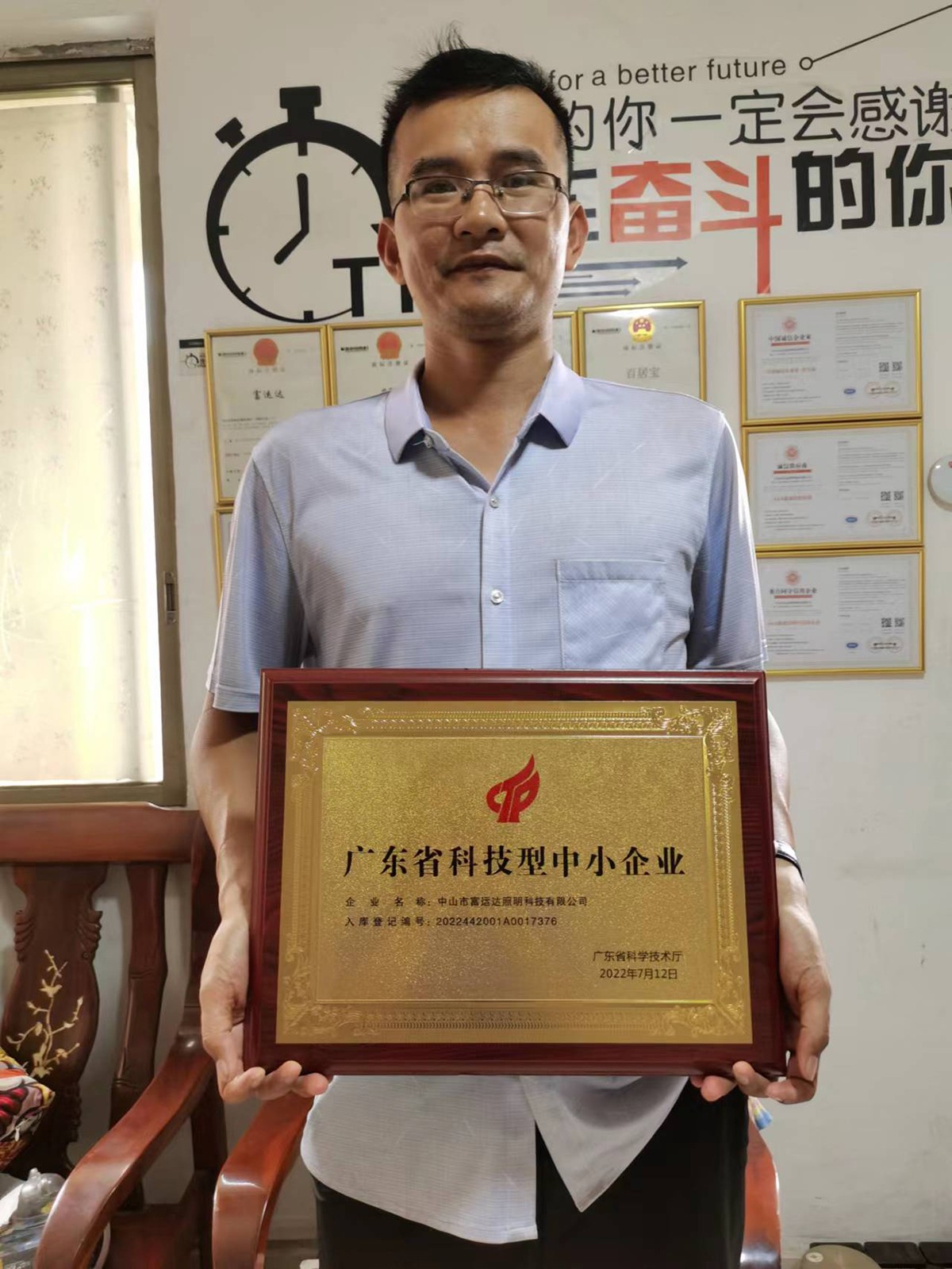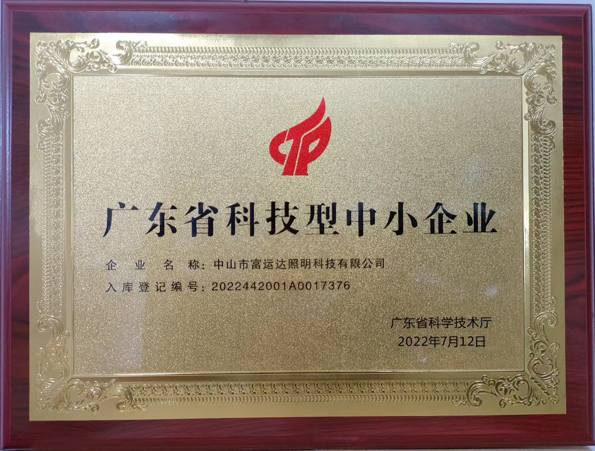 On July 12, 2022, Fuyunda Lighting Technology was awarded the title of Guangdong Province Science and Technology oriented Small and Medium sized Enterprise,